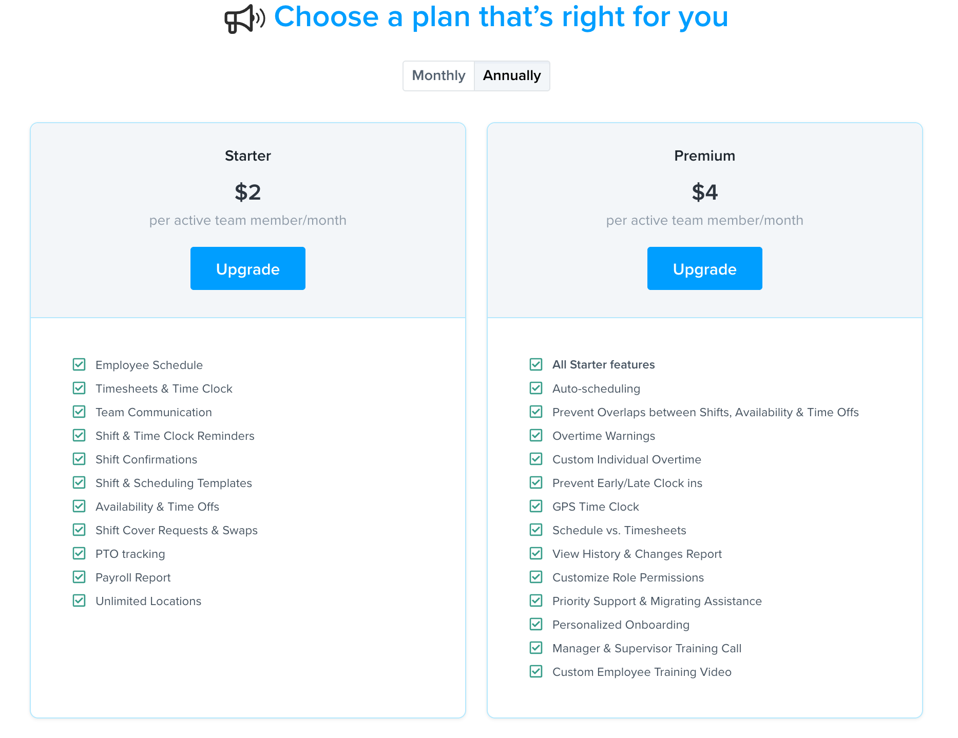 - You’ll see a window with our plan options. Select your preferred plan and choose between a monthly or yearly subscription.