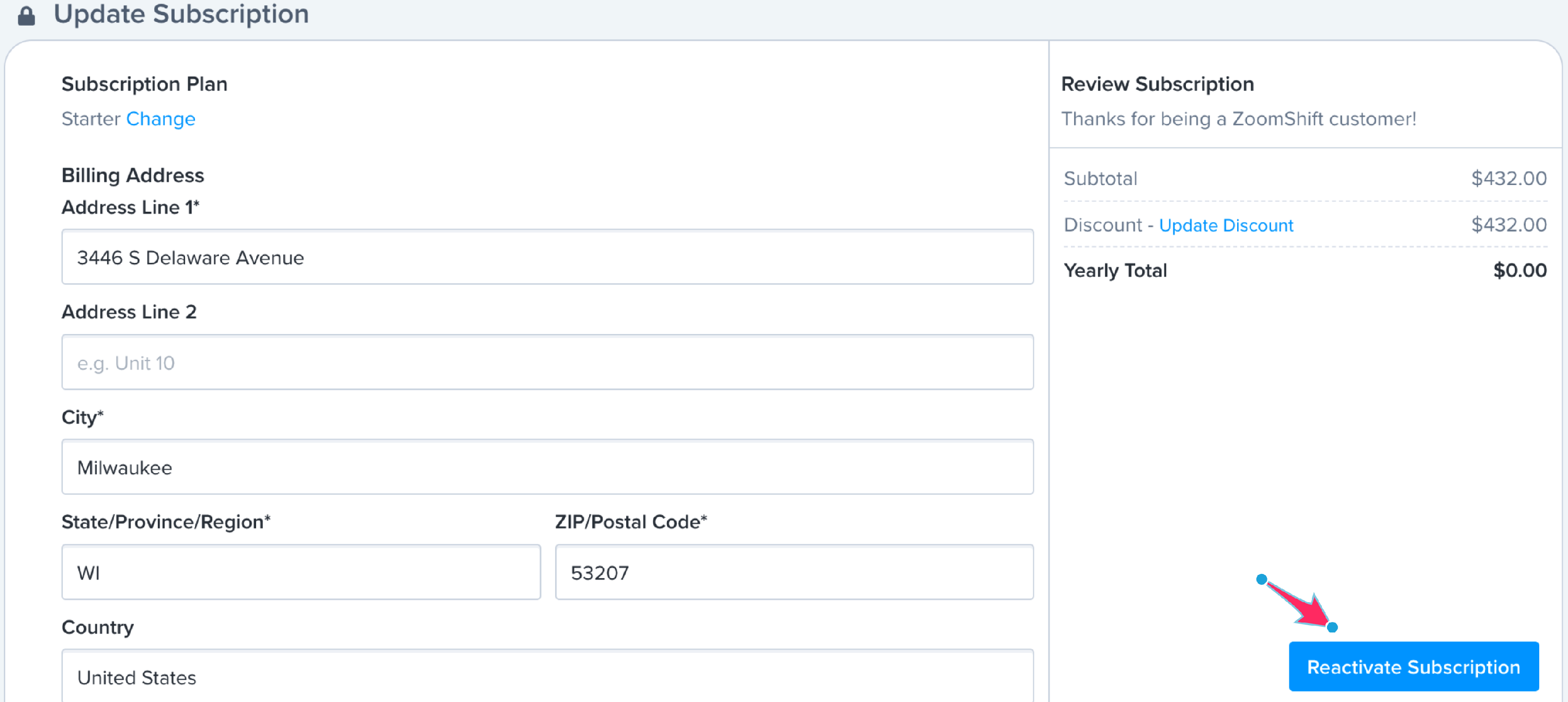 - Click Reactivate Subscription